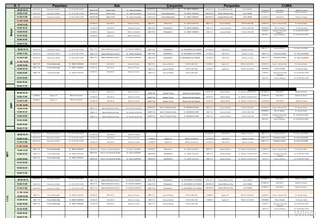 • HAFTALIK DERS PROGRAMI